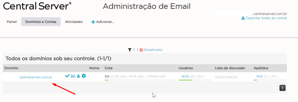 Nota: Certifique-se de que você possui autoridade sobre o domínio extra que está sendo adicionado. Isso inclui ter acesso ao gerenciamento DNS e à verificação de propriedade, caso seja necessário. Além disso, é essencial verificar os apontamentos de DNS do serviço de e-mail. Você pode consultar quais são os apontamentos para o serviço de e-mail da CentralServer através deste guia, Quais são as entradas do serviço de e-mail da CentralServer?