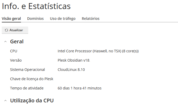 Para visualizar as informações do seu Cloud Server, siga os passos abaixo conforme o tipo de acesso ao Plesk.