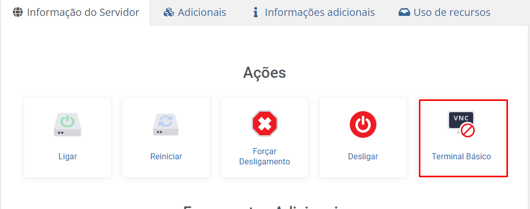 1. Na página inicial do painel KVM, aba Informações do Servidor clique na opção terminal básico.