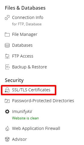 1. Na página inicial do seu domínio no Plesk, clique na opção “SSL/TLS Certificates”.