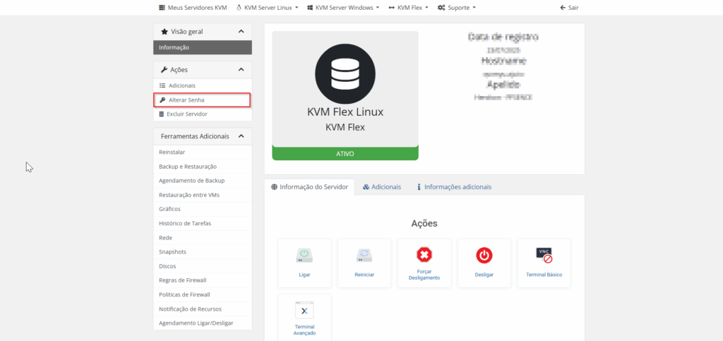 No painel KVM, selecione a opção “Alterar Senha”.