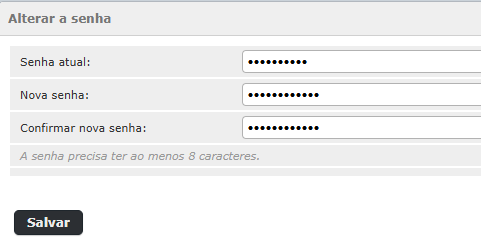 6. Após clicar em “Salvar” será exibido uma mensagem de confirmação, informando que a senha foi alterada com sucesso.