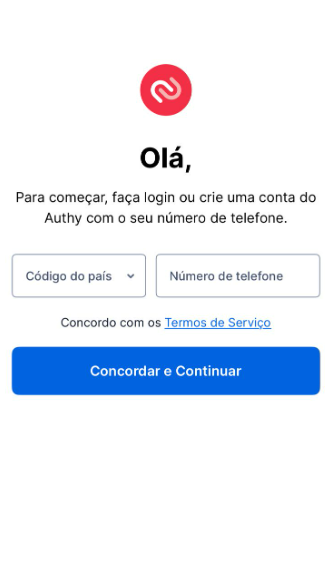 Realize o login ou crie uma conta no Authy utilizando seu número de celular.