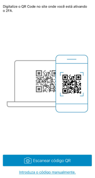 Para inserir uma credencial no Authy basta escanear o código QR fornecido pelo serviço ou então inserir manualmente: