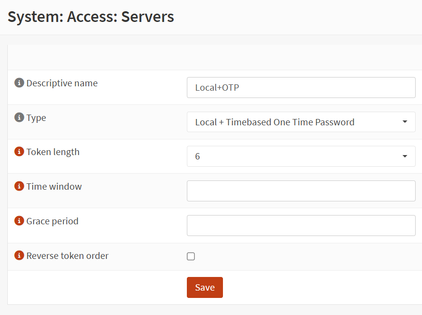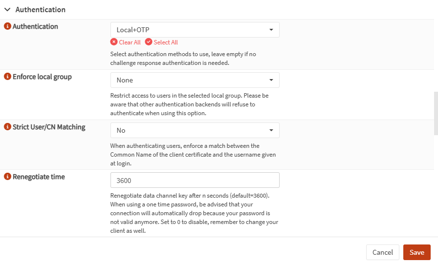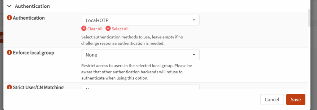 - Em Authentication, confirme que apenas o backend Local + OTP está selecionado