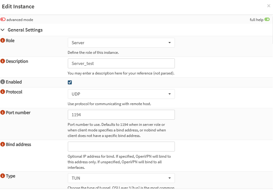- Acesse VPN → OpenVPN → Instances