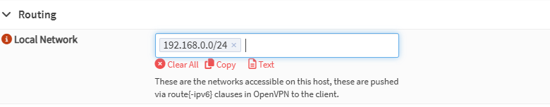 - Local Network: insira as redes internas que os clientes devem acessar, ex: