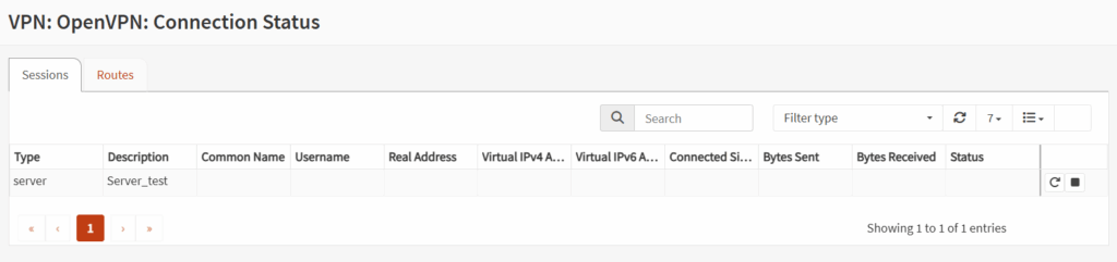Vá em VPN → OpenVPN → Connection Status e confirme se o serviço está ativo.