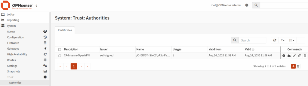 - Acesse System > Trust > Authorities.