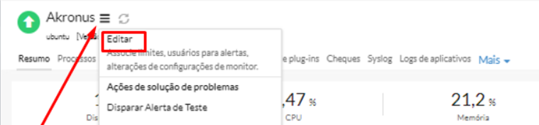 Neste procedimento iremos configurar métricas de uso de recursos para notificações do site24x7