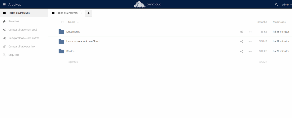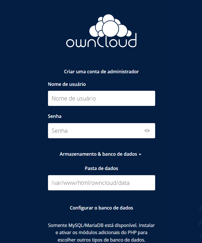 O template cria uma base de dados com o nome “owncloud” e um usuário “ownclouduser” por padrão. Recomendamos que você altere a senha ou remova/edite esse usuário por questões de segurança.