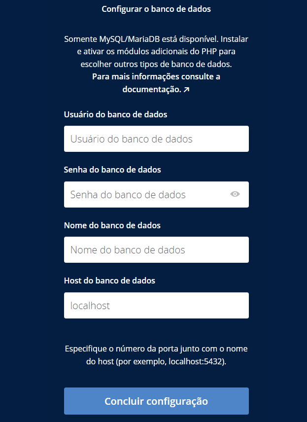 Se a configuração for bem-sucedida, a seguinte tela será carregada: