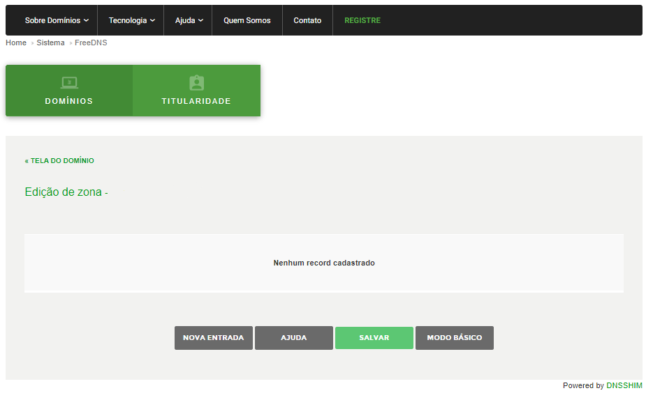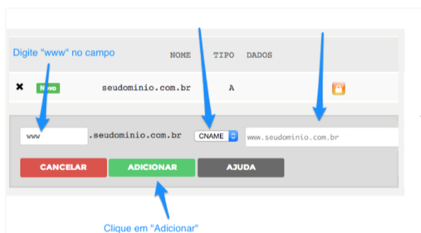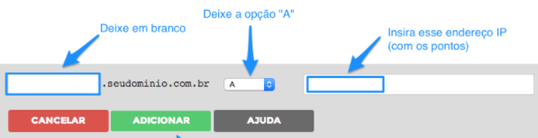 – Entrada (subdomínio): em branco ou com @