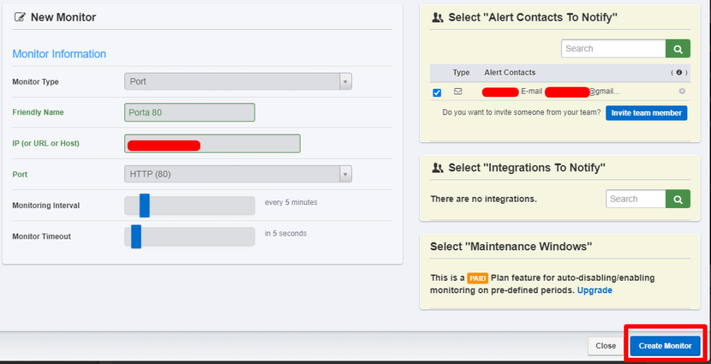 Por fim, clique no botão “Create Monitor” para criar o monitor com as configurações especificadas.