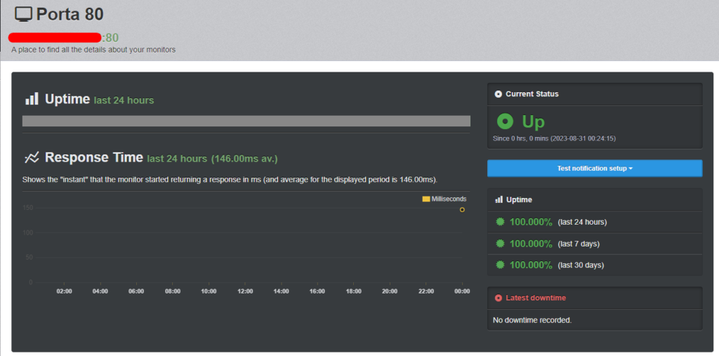 Neste procedimento iremos realizar a criação de um sensor de monitoramento para a porta 80 na ferramenta UptimeRobot.