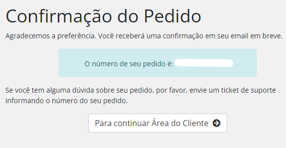 9 – Em seguida será exibida a tela confirmando o pedido com sucesso.