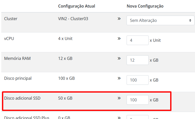 Realize a contratação do disco adicional desejado e confirme a contratação.