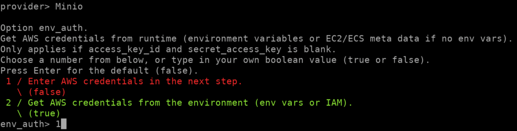 s3e pressione Enter. - Selecione o provedor como Minio.