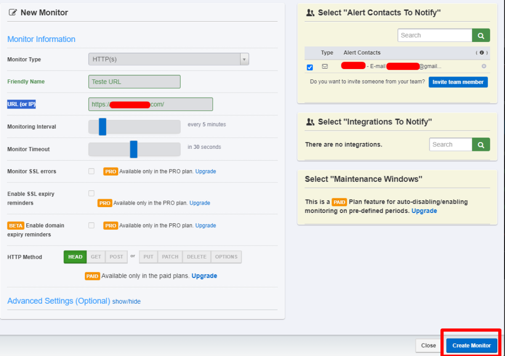 3 – Selecione HTTP(s) em Monitor Type.
