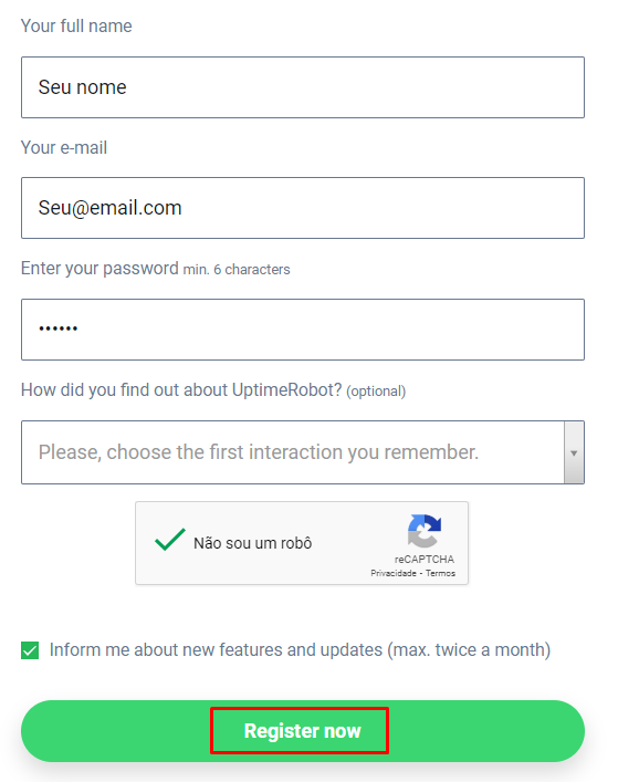 Neste procedimento iremos realizar a criação de uma conta no UptimeRobot.