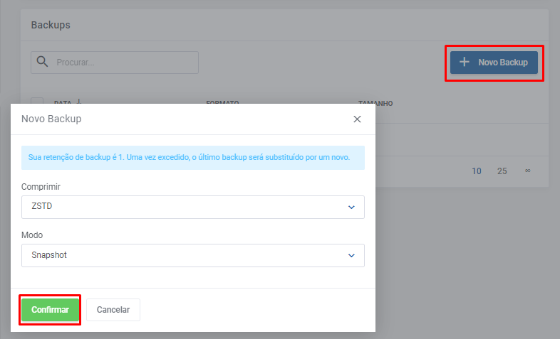 8. Clique em Confirmar: