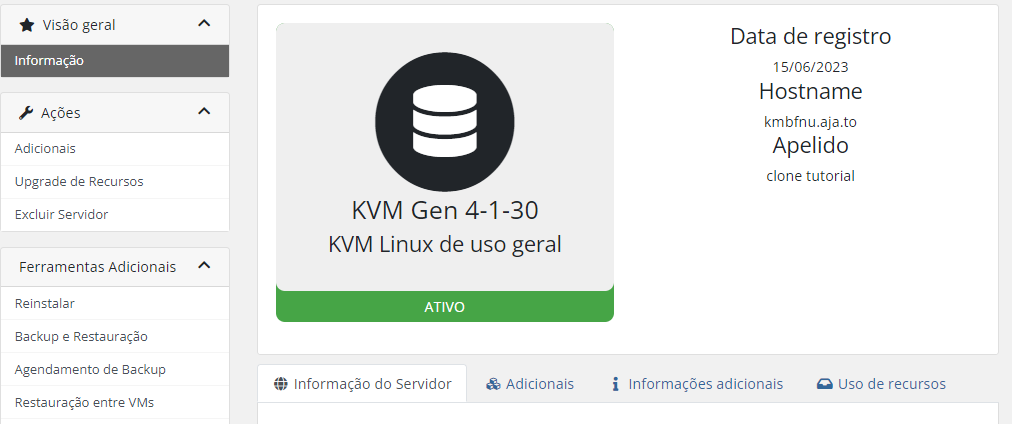 NOTA 2 : Por padrão, as regras de firewall são copiadas da máquina virtual de origem para a de destino. Caso seja necessário liberar mais portas no servidor, é recomendado que você consulte o guia de acompanhamento para realizar esse procedimento de forma adequada. Como criar regras de acesso ou bloqueio em meu firewall KVM?