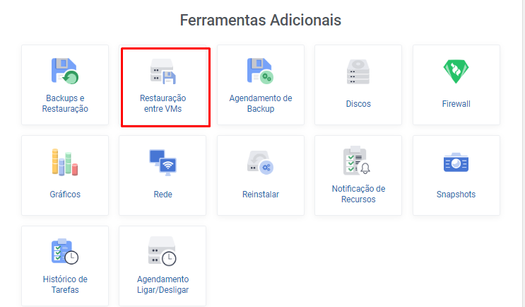 6. No grupo de Ferramentas Adicionais, clique em Restauração entre Vms