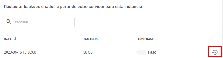7. Selecione o backup do servidor de origem feito anteriormente e clique no botão restaurar.
