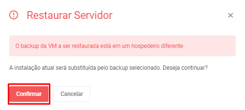 Nota: O servidor que receberá a restauração deve ser criado no mesmo cluster do servidor de origem. Informações sobre o cluster do servidor de origem podem ser encontradas em “Adicionais“.