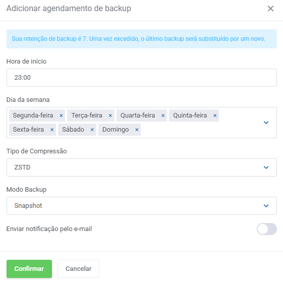 Nota: antes da configuração do agendamento do backup é necessário contratar pelo menos um ponto de retenção, verifique o guia Como contratar pontos de retenção no painel do KVM?