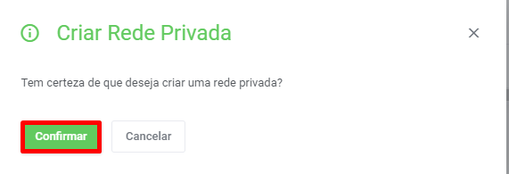 2.1 No painel de redes, clique na opção “Criar Rede Privada” e confirme