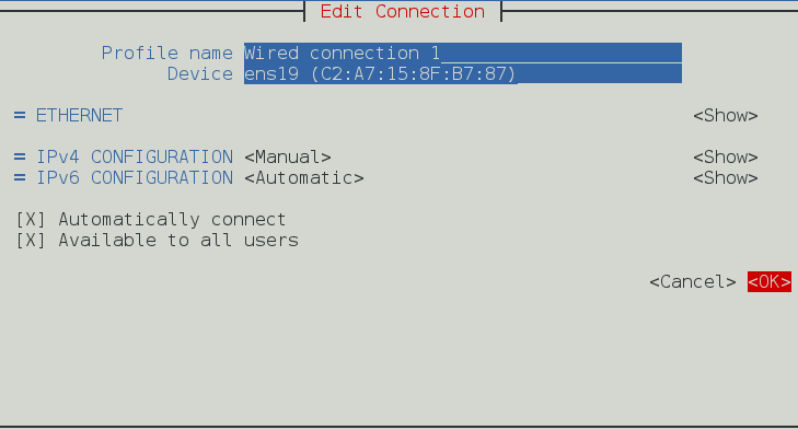 5. Saia do nmtui e rode o comando ip a novamente, você pode confirmar que o IP foi adicionado a nova interface de rede: