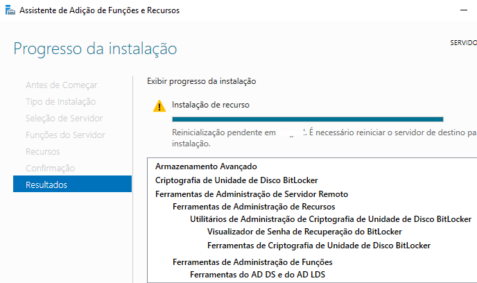 3 – Clique em Próximo e Instale o recurso, ao final será solicitado para reiniciar o servidor