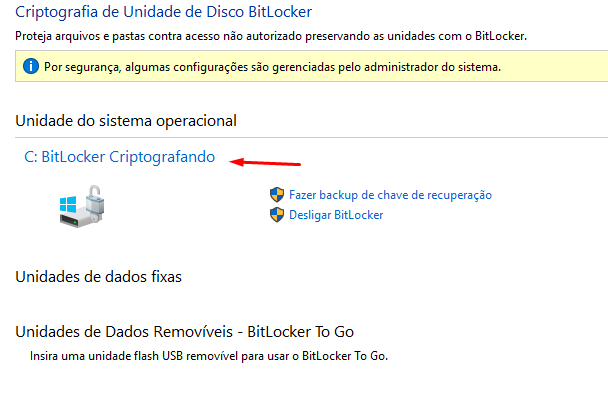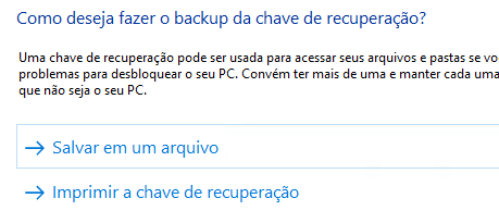 ATENÇÃO: É de extrema importância guardar essa chave em um local seguro, preferencialmente salvar mais de uma cópia (cofre de senha, impresso, pendrive, etc). Pois em alguma situação de emergência pode ser necessário inserir esta chave para iniciar o Windows, e sem ela torna-se impossível acessar os dados.