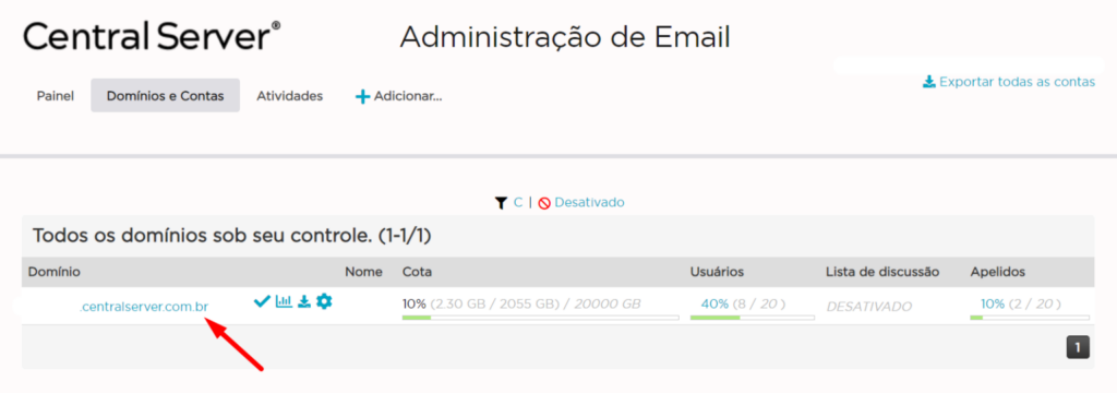 2 – Clique no domínio desejado para o qual você deseja remover um usuário.
