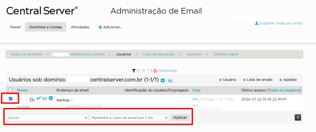 Neste procedimento iremos realizar a exclusão de uma conta de e-mail.