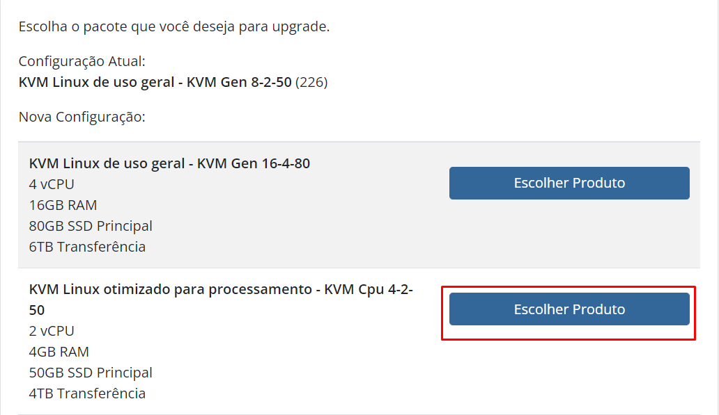 Nota: O espaço em disco não permite downgrade. Ou seja, após aumentar o tamanho, não é possível reduzir novamente. Por isso, recomendamos atenção ao realizar upgrades.