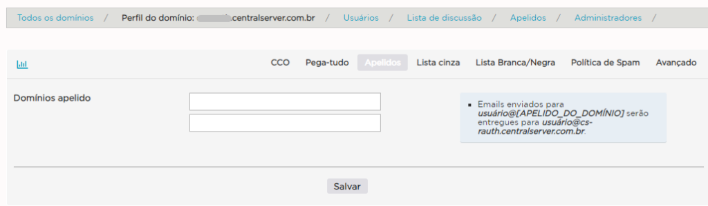 - Domínios Apelido: E-mails enviados para