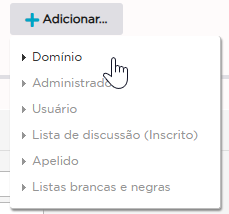Para adicionar um domínio, clique em Adicionar… e posteriormente em Domínio.