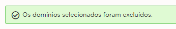Após preencher as informações e clicar em Adicionar, essa será a mensagem de sucesso, com as opções de gerenciamento do domínio: