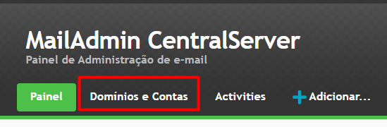 2 – Navegue até a seção “Domínios e Contas” para visualizar a lista de domínios no servidor.