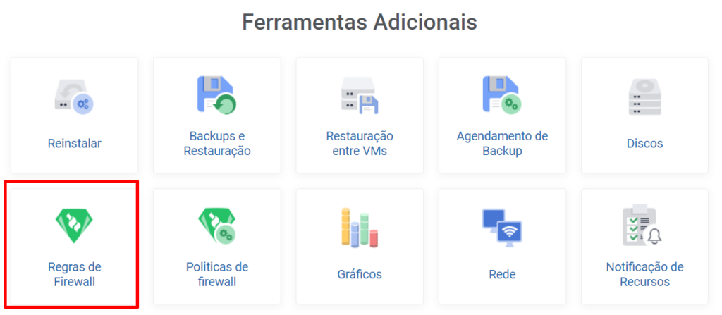 2. Por meio do grupo de ferramentas adicionais, clique na opção Regras de Firewall.