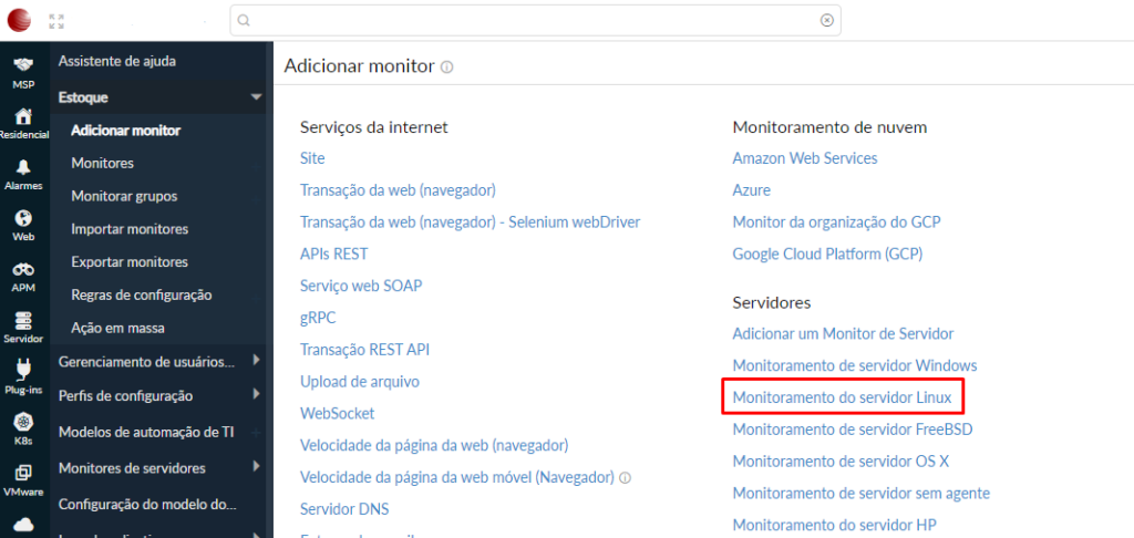 Com este procedimento conseguirá configurar um novo monitor de servidor Linux no Site24x7.