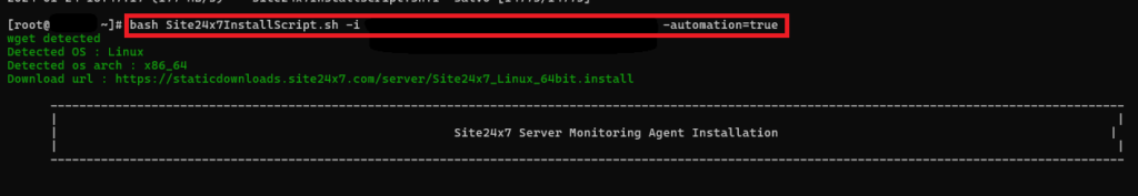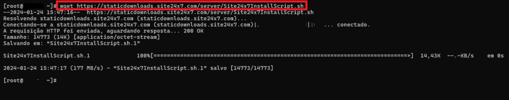 Nota: Caso desejar realizar a desinstalação do agente de monitoramento, basta executar este comando: sudo /opt/site24x7/monagent/bin/uninstall: