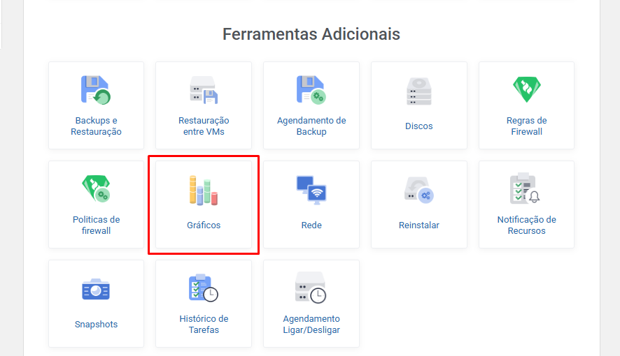 Após selecionar o servidor, encontre a opção “Gráficos” e clique nela:
