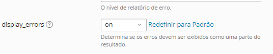 - Em Configurações do php encontre display_erros e altere conforme desejado, sendo opção on para mostrar e off para desligar: