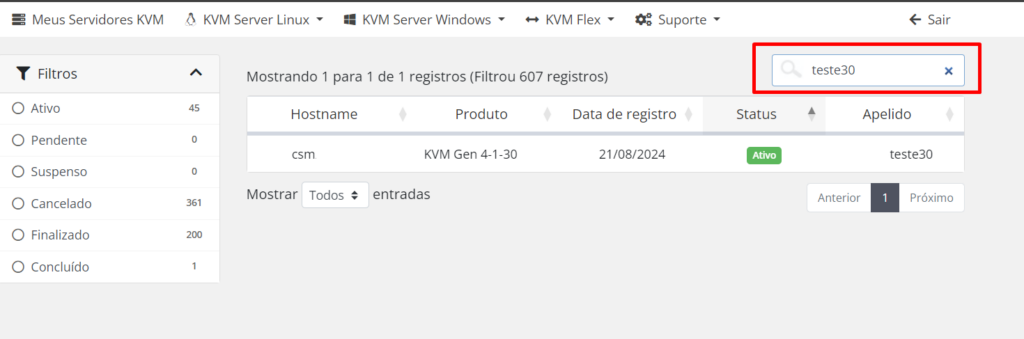 5 – Na barra de pesquisa localize o seu servidor digitando o apelido (nome do servidor) ou hostname e clique sob o mesmo.