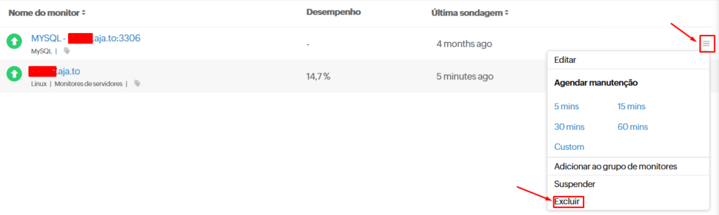 4 – Selecione o monitor e em seguida a opção de exclusão.