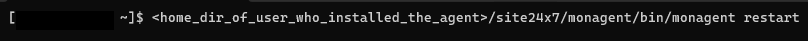 <home_dir_of_user_who_installed_the_agent>/site24x7/monagent/bin/monagent restart: