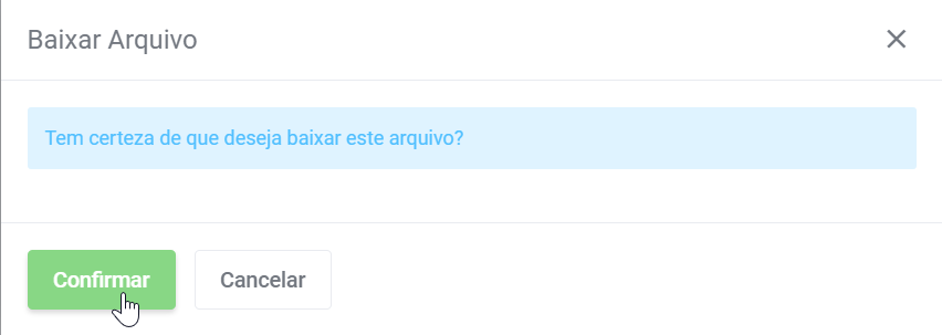 9 – Clique no botão de download ao lado do arquivo que deseja baixar. Uma mensagem de confirmação será exibida com o texto: “Tem certeza de que deseja baixar este arquivo?” Clique em Confirmar para iniciar o download.